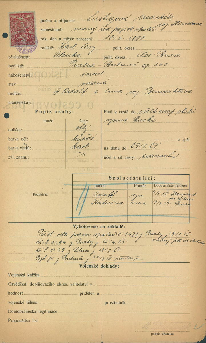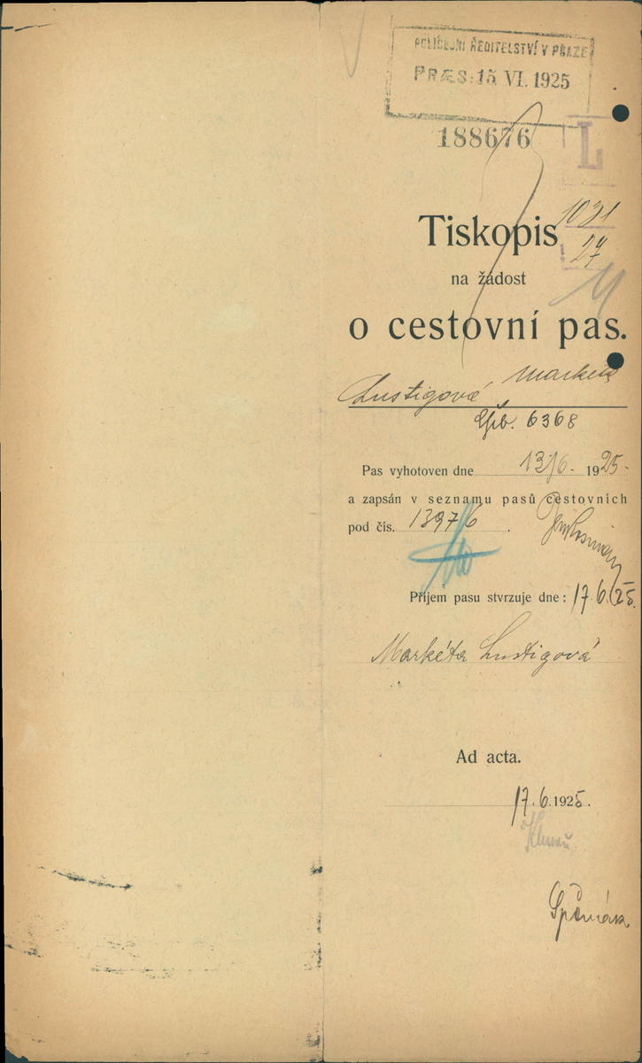 Lustigová Markéta: Žádost o vydání cestovního pasu
