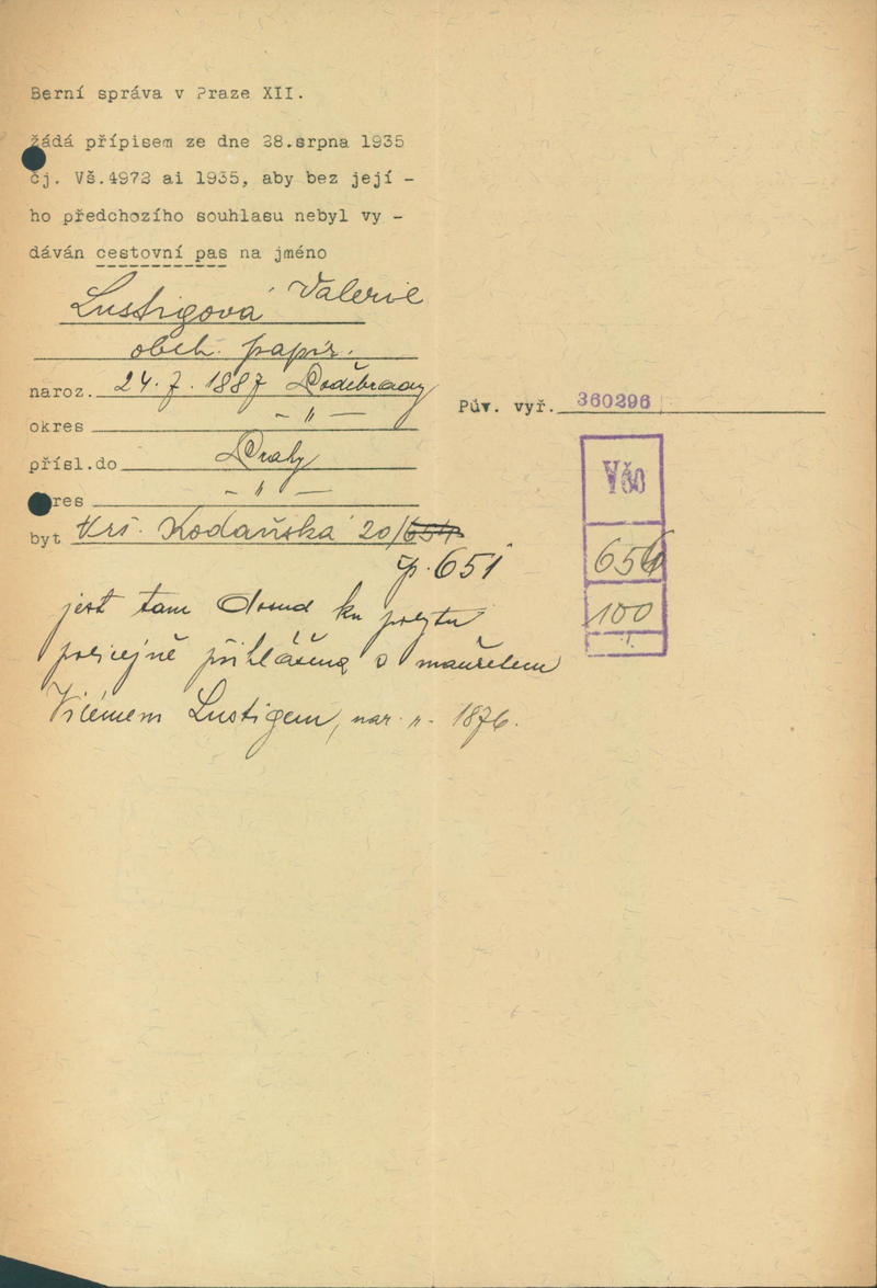 National archives Prague > Police Directorate Prague > 1941-1950 > L > Lustigová Valerie