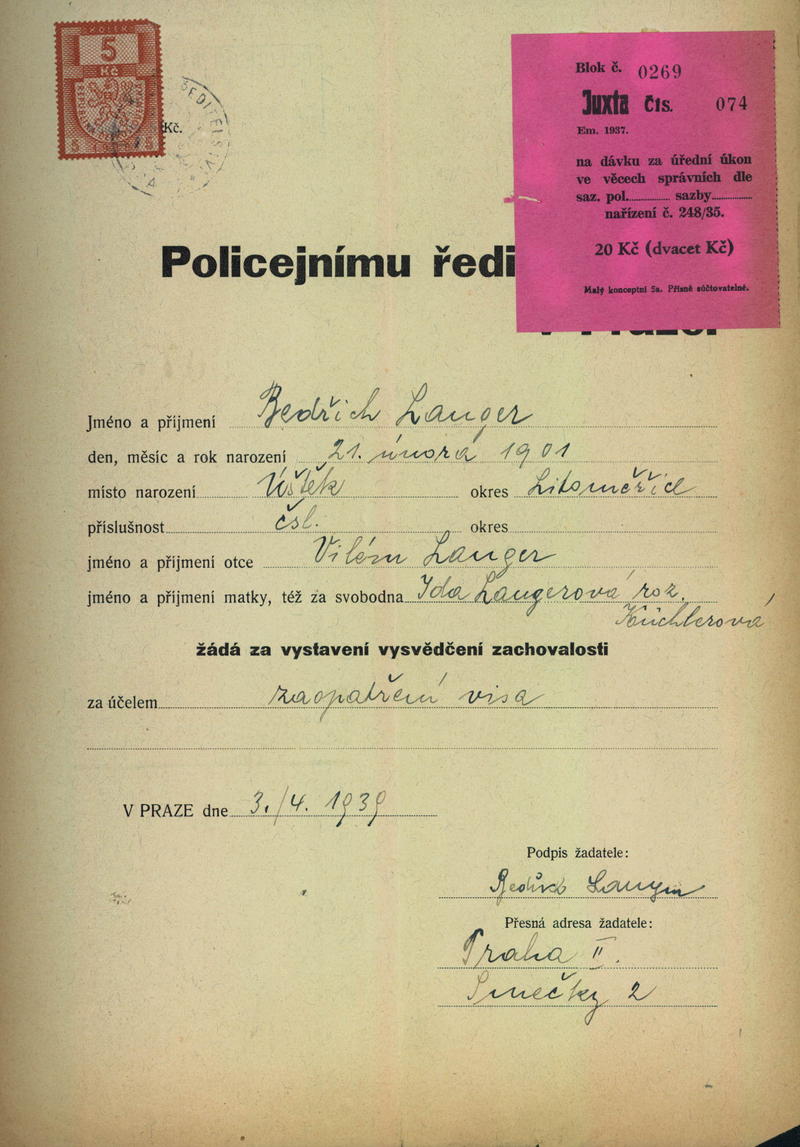 National archives Prague > Police Directorate Prague > 1941-1950 > L > Langer Bedřich