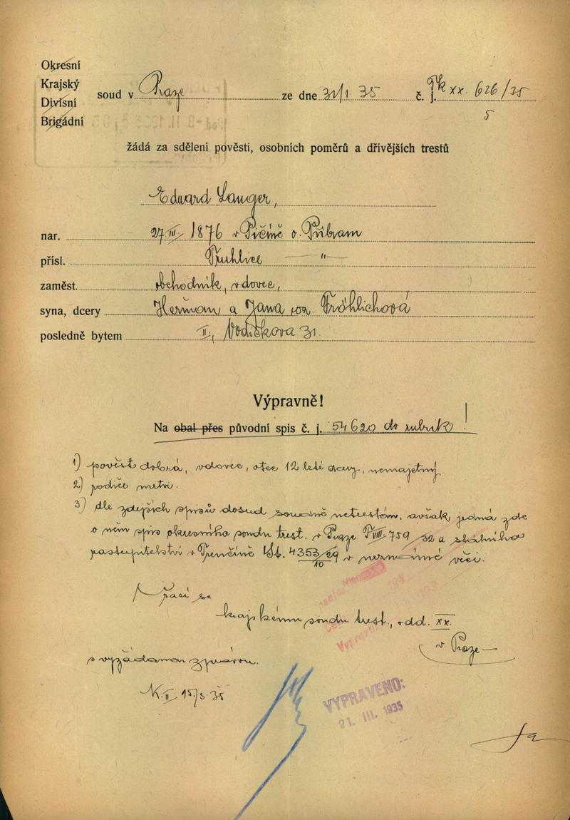 National archives Prague > Police Directorate Prague > 1941-1950 > L > Langer Eduard