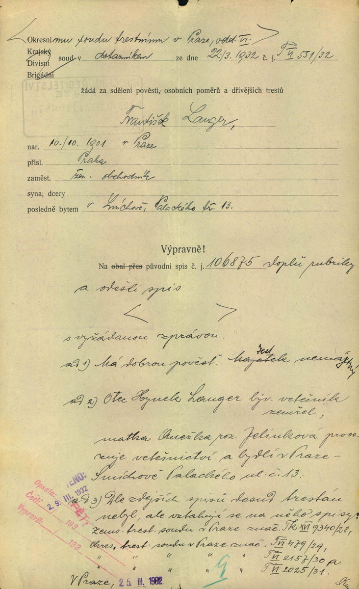 National archives Prague > Police Directorate Prague > 1941-1950 > L > Langer František
