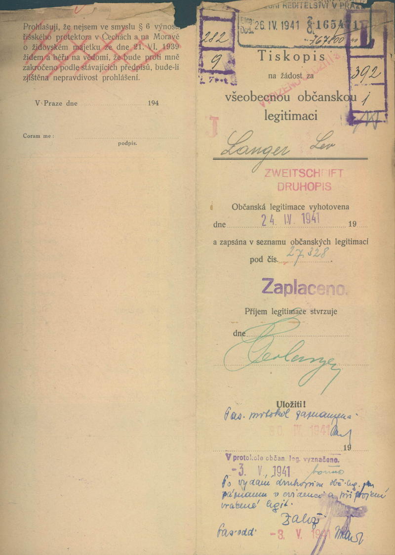 Langer Leo: Žádost o vydání kopie občanské legitimace