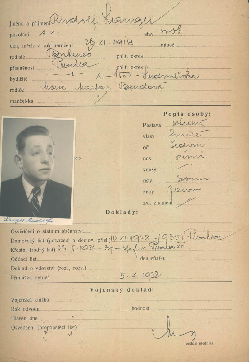 National archives Prague > Police Directorate Prague > 1941-1950 > L > Langer Rudolf