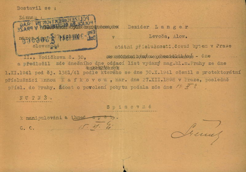 National archives Prague > Police Directorate Prague > 1941-1950 > L > Langer Dezider