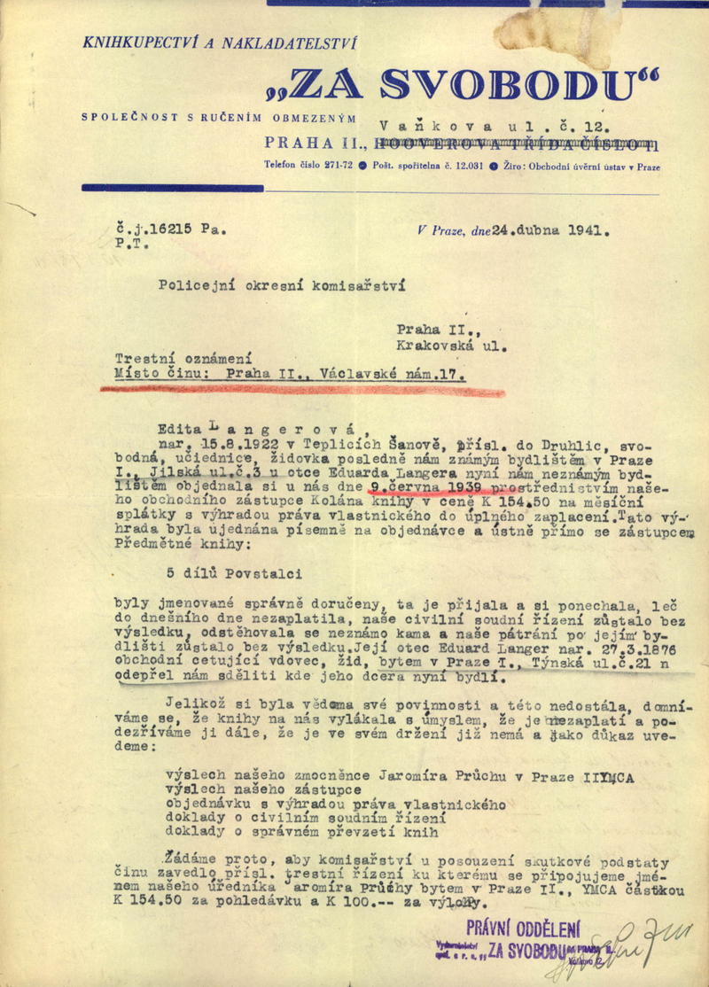 National archives Prague > Police Directorate Prague > 1941-1950 > L > Langerová Edita