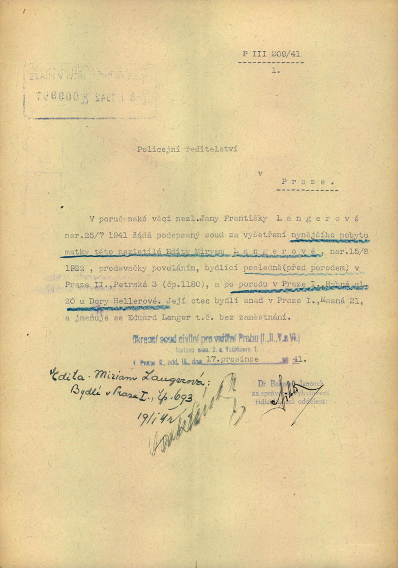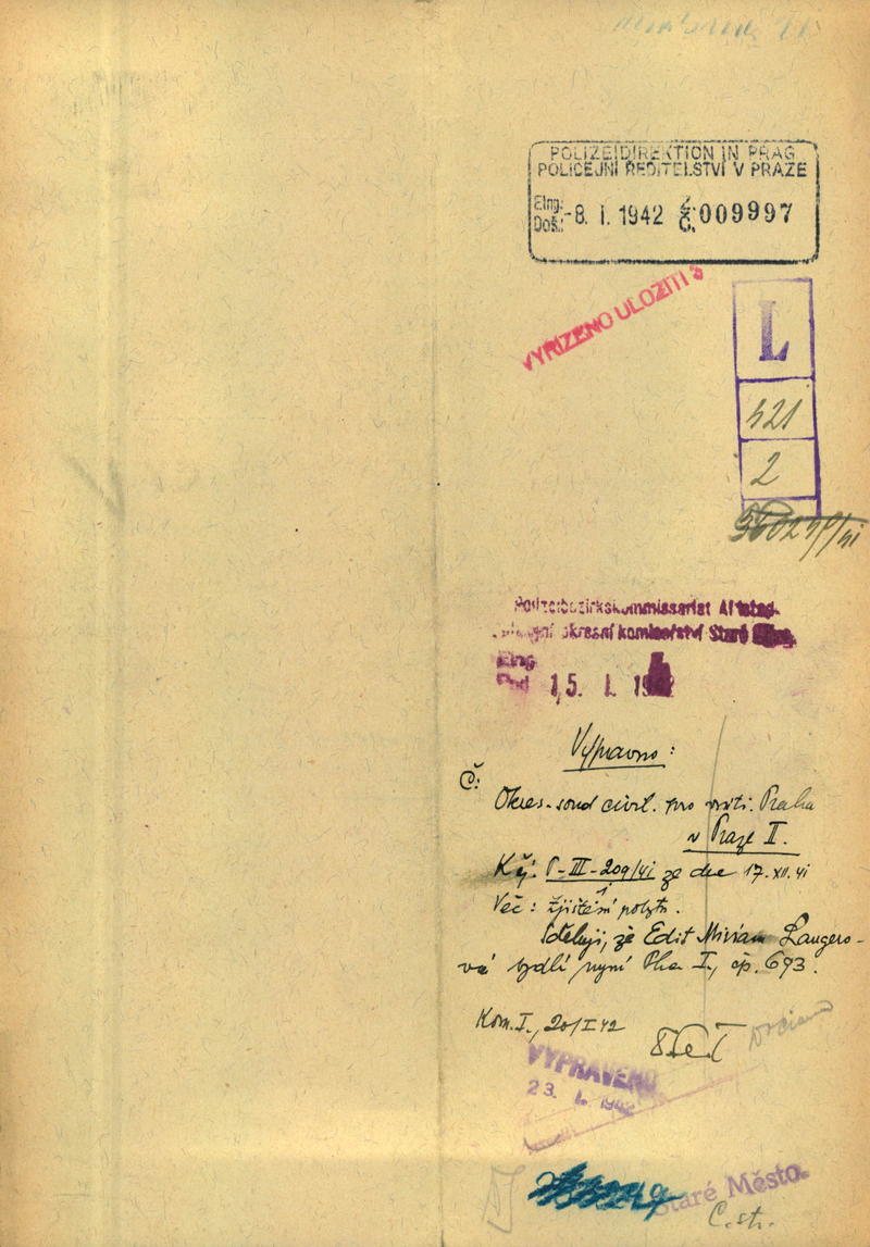National archives Prague > Police Directorate Prague > 1941-1950 > L > Langerová Edita