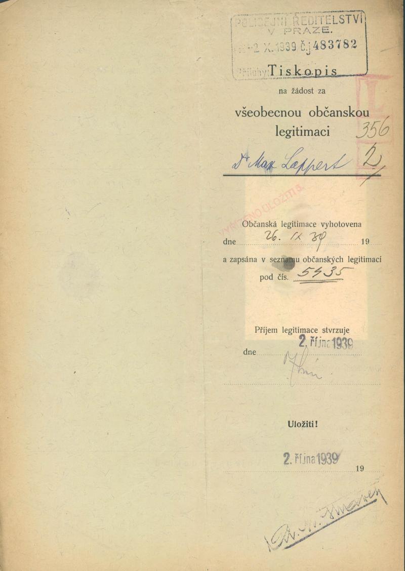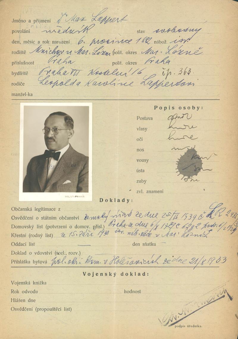 Lappert Max: Žádost o vydání občanské legitimace