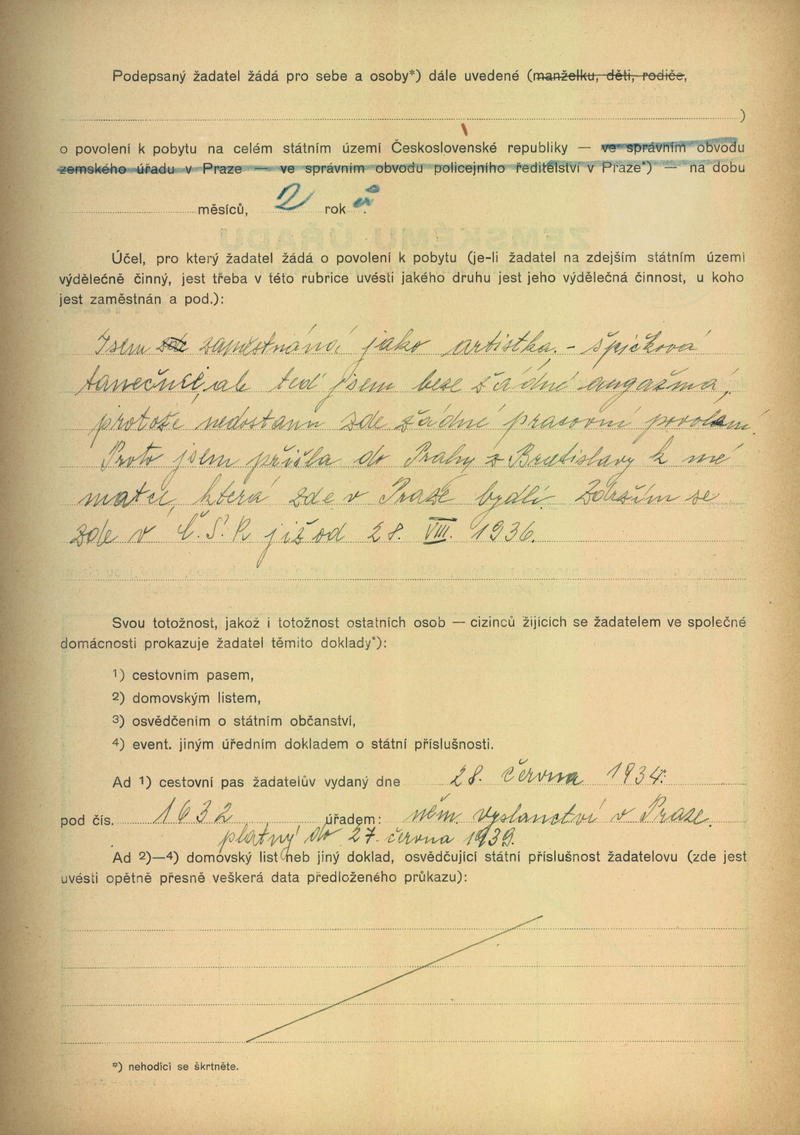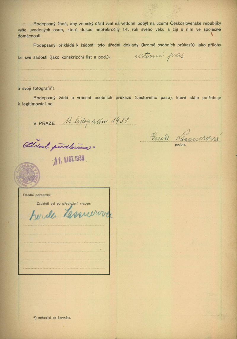 Lassnerová Klára Gerda: Žádost o povolení pobytu