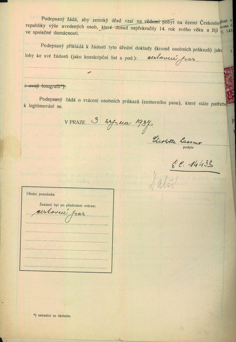 Lassnerová Šarlota: Žádost o povolení pobytu