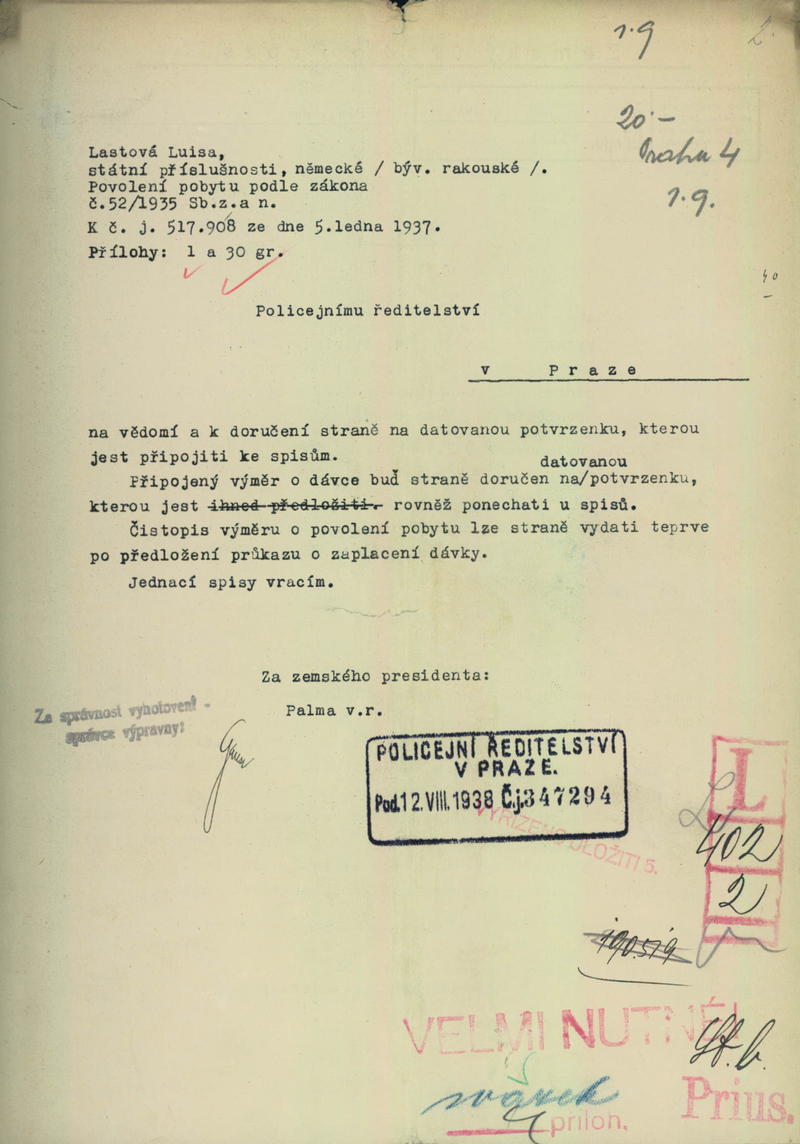 National archives Prague > Police Directorate Prague > 1941-1950 > L > Lastová Luisa E.