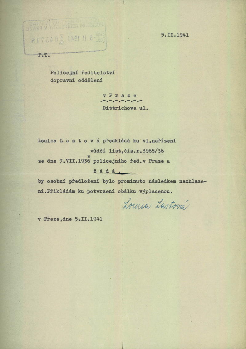 National archives Prague > Police Directorate Prague > 1941-1950 > L > Lastová Luisa E.