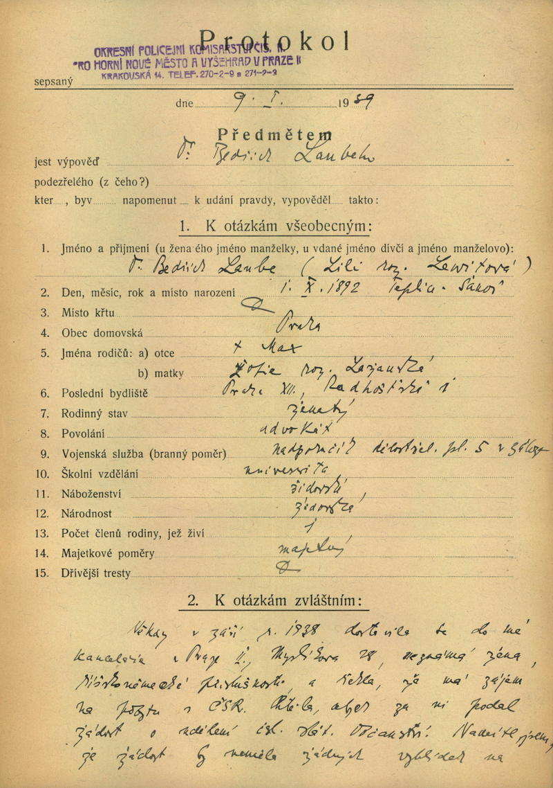 National archives Prague > Police Directorate Prague > 1941-1950 > L > Laube Bedřich