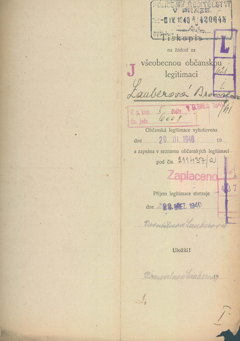 National archives Prague > Police Directorate Prague > 1941-1950 > L > Lauberová Bronislava