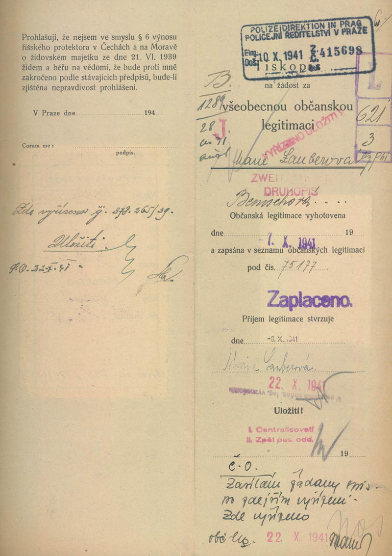 Lauberová Marie: Žádost o vydání občanské legitimace