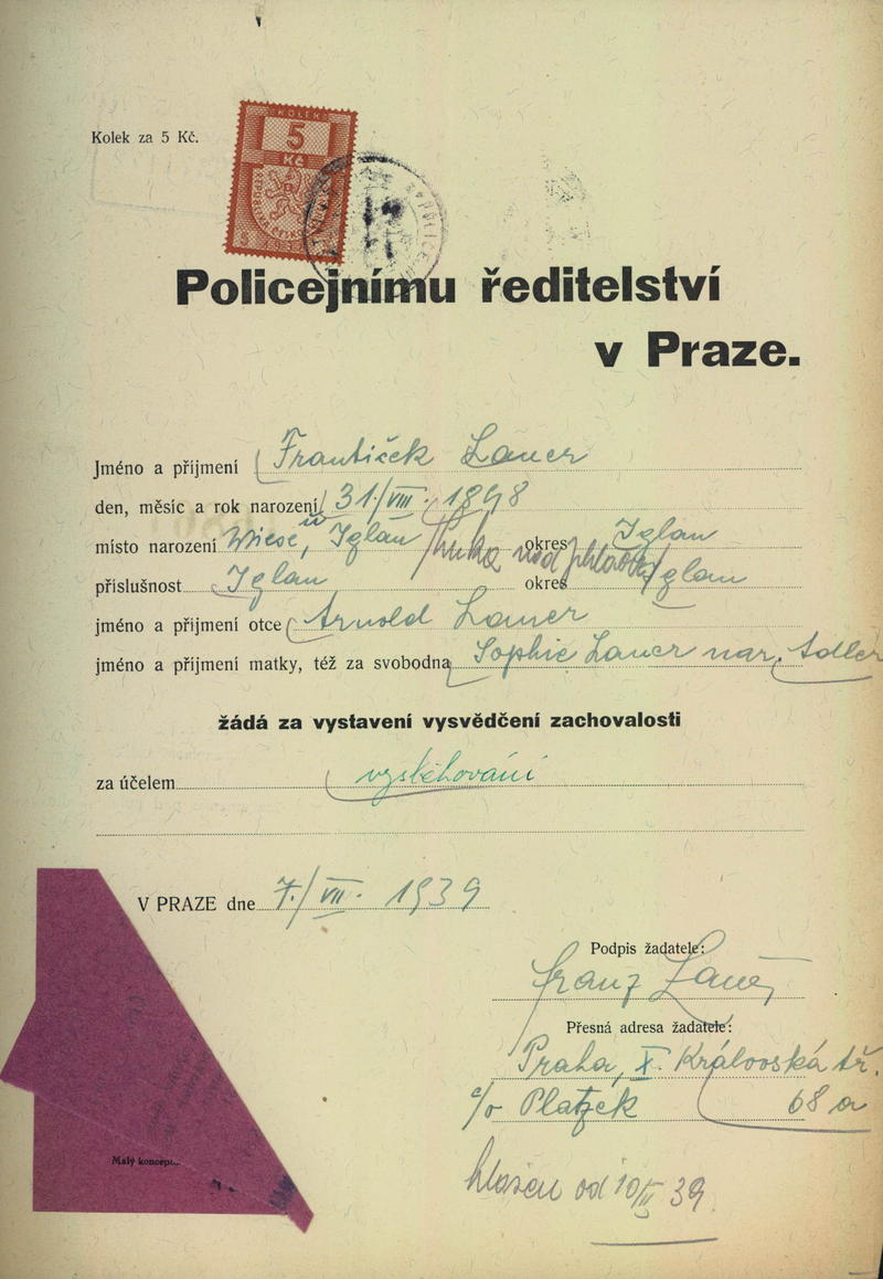 Lauer František: Žádost o vystavení vysvědčení zachovalosti