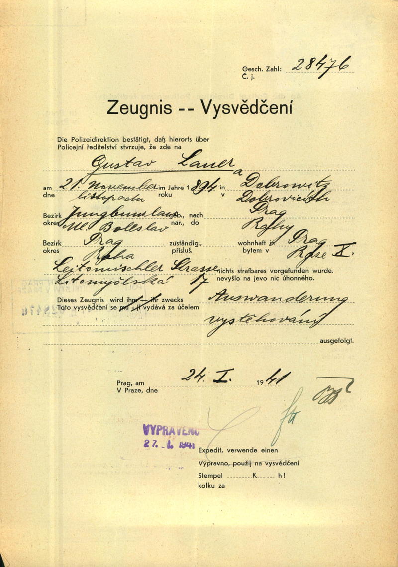 National archives Prague > Police Directorate Prague > 1941-1950 > L > Lauer Gustav
