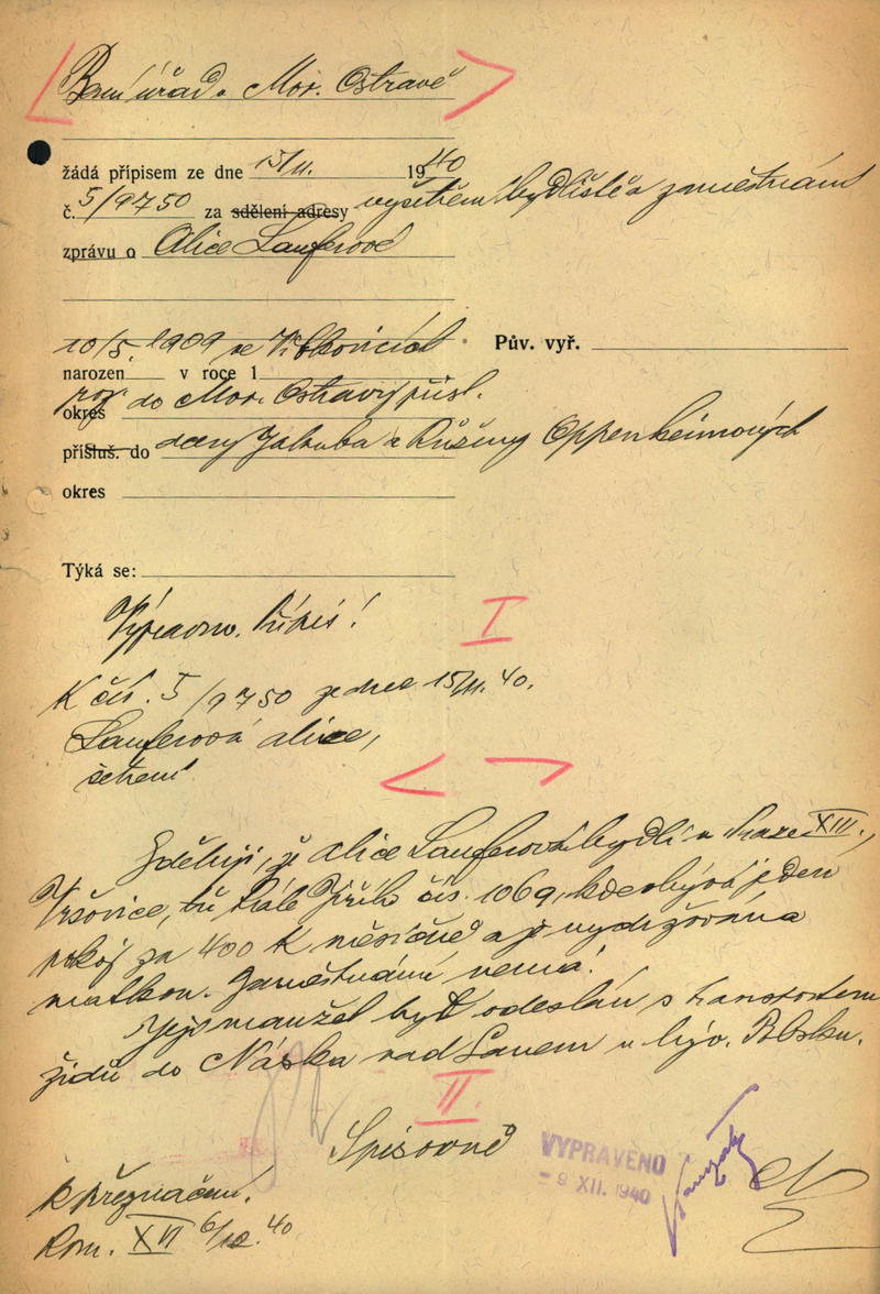 National archives Prague > Police Directorate Prague > 1941-1950 > L > Lauferová Alice (Lillie)