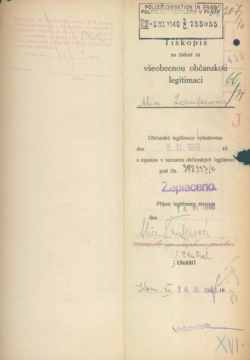 Lauferová Alice (Lillie): Žádost o vydání občanské legitimace