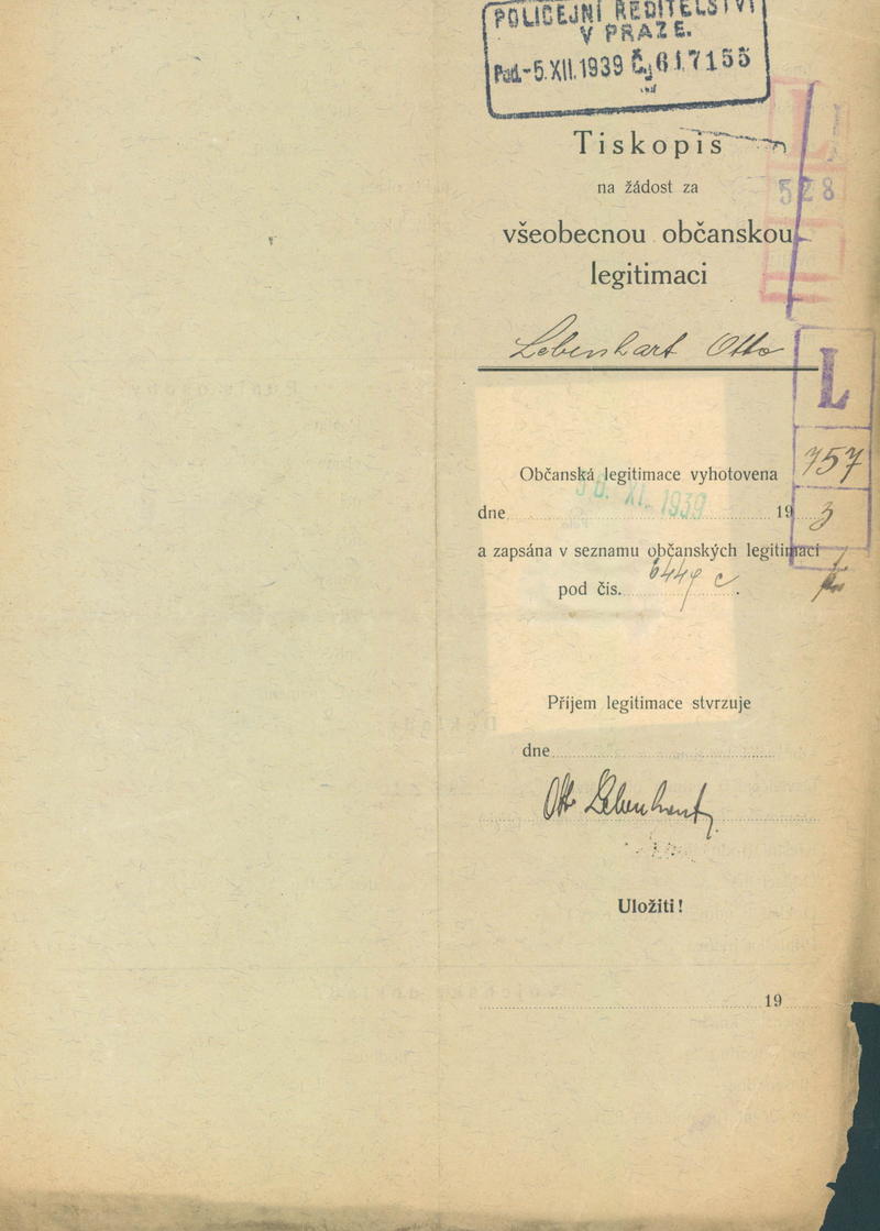 Lebenhart Otto: Žádost o vydání občanské legitimace