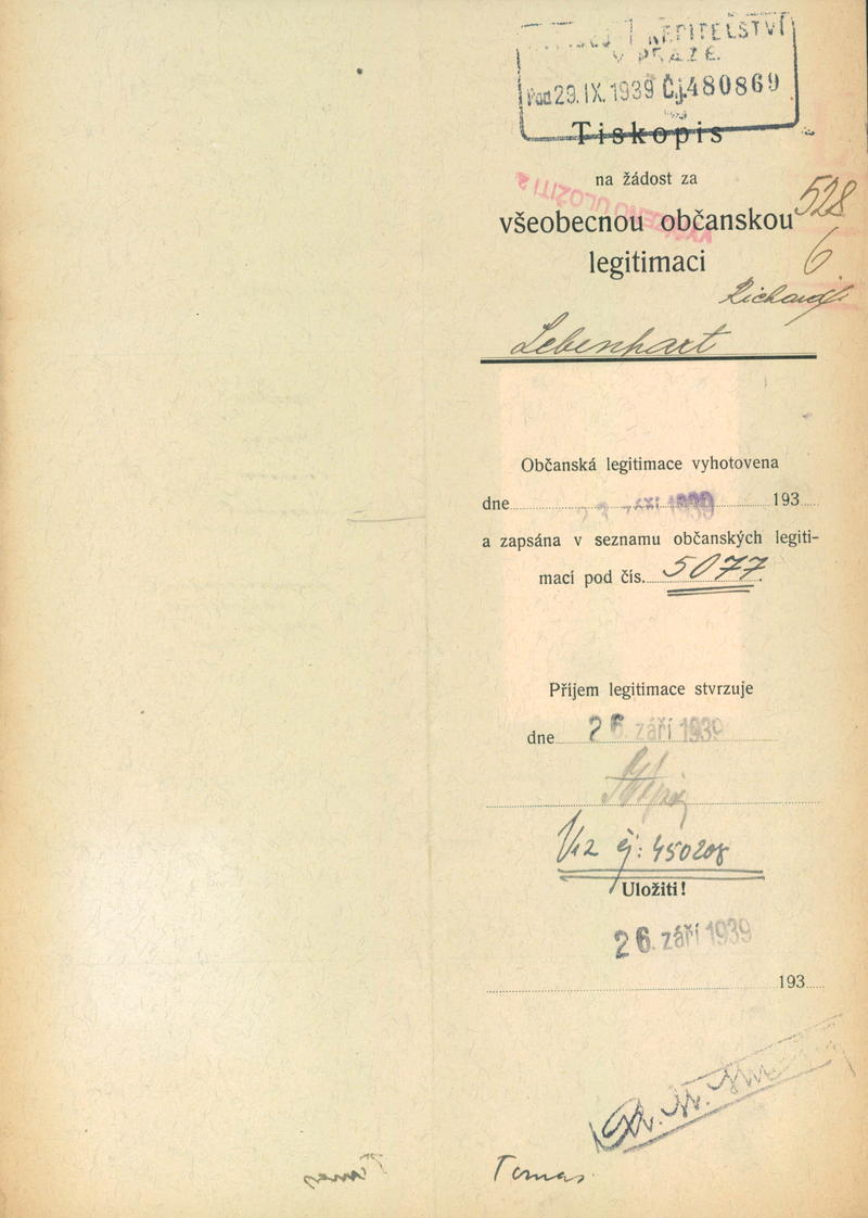 Lebenhart Richard: Žádost o vydání občanské legitimace