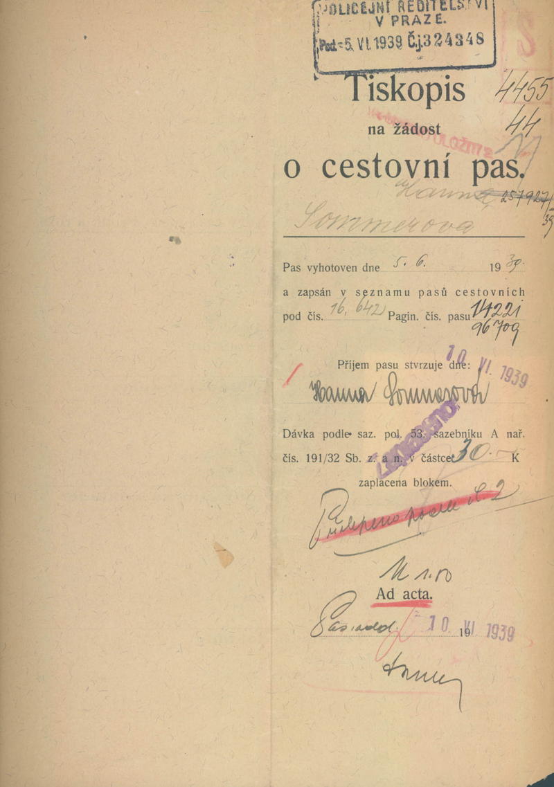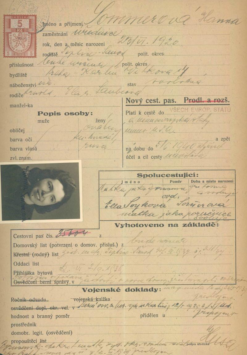Lebenhartová Hana: Žádost o vydání cestovního pasu