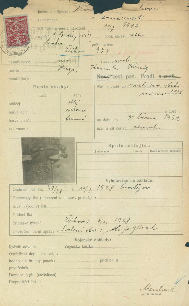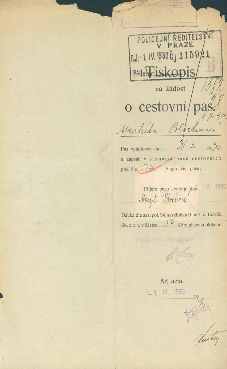 Löblová Markéta: Žádost o vydání cestovního pasu