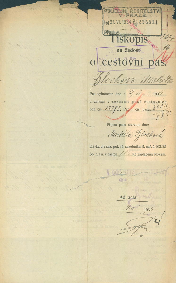National archives Prague > Police Directorate Prague > 1941-1950 > L > Löblová Markéta