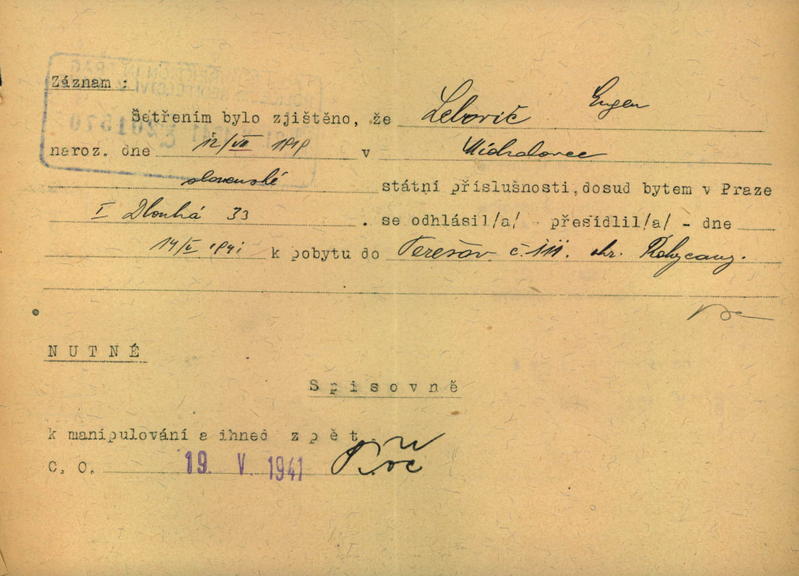 This database contains the names and fates of those who were deported from the territory of today’s Czech Republic, be it their homeland or may they have been deported to the Theresienstadt ghetto before from different european countries. Further, it contains basic information on those men, women and children, most of whom were Roma or Sinti, who died as prisoners of the so-called „Gypsy camp I“ Lety u Písku.