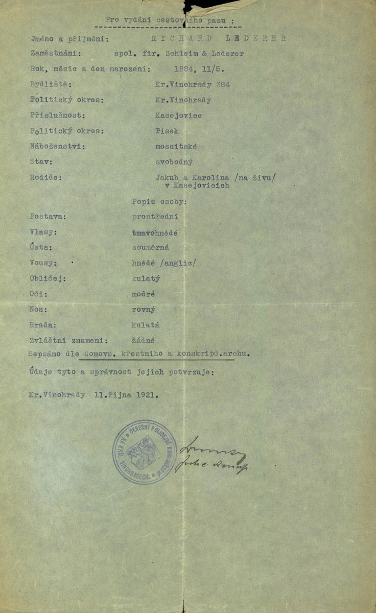 National archives Prague > Police Directorate Prague > 1941-1950 > L > Lederer Richard
