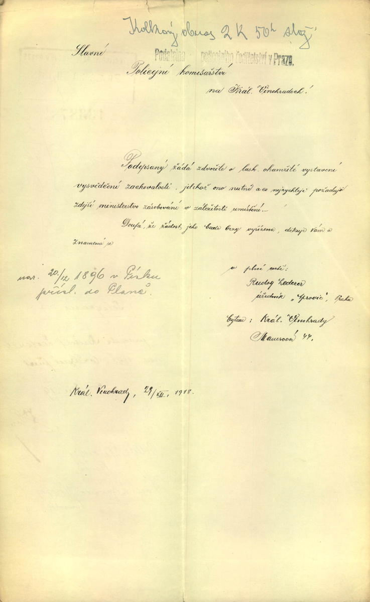 Lederer Rudolf: Žádost o vystavení vysvědčení zachovalosti