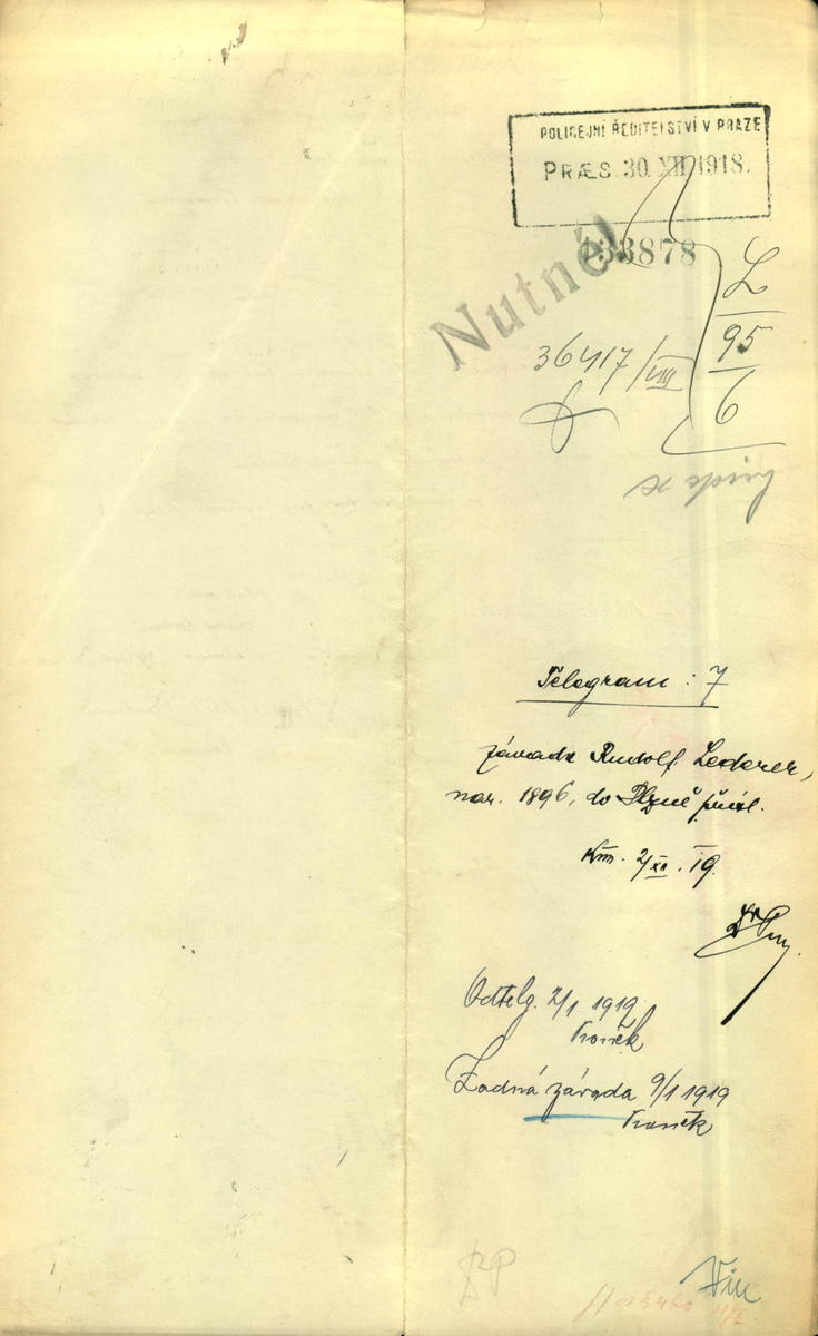 National archives Prague > Police Directorate Prague > 1941-1950 > L > Lederer Rudolf