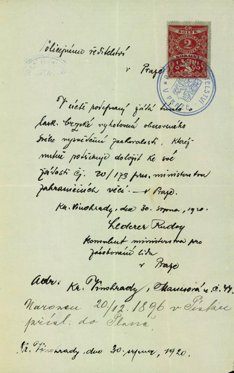 National archives Prague > Police Directorate Prague > 1941-1950 > L > Lederer Rudolf