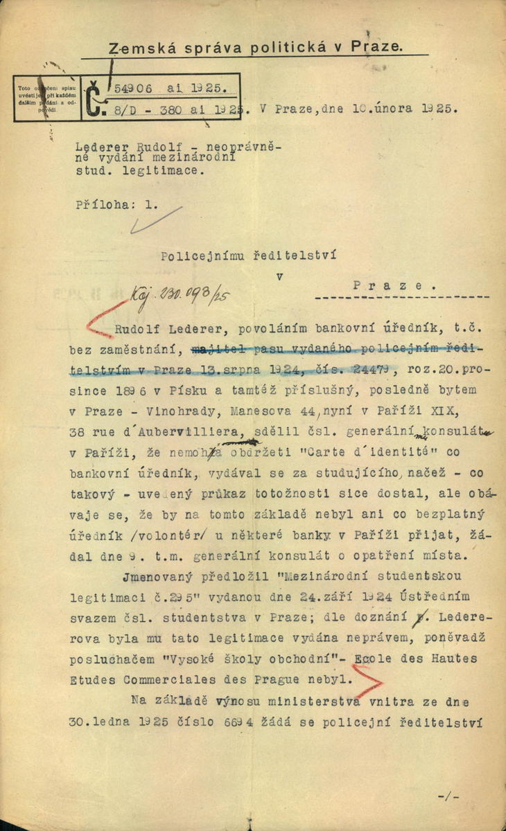 National archives Prague > Police Directorate Prague > 1941-1950 > L > Lederer Rudolf