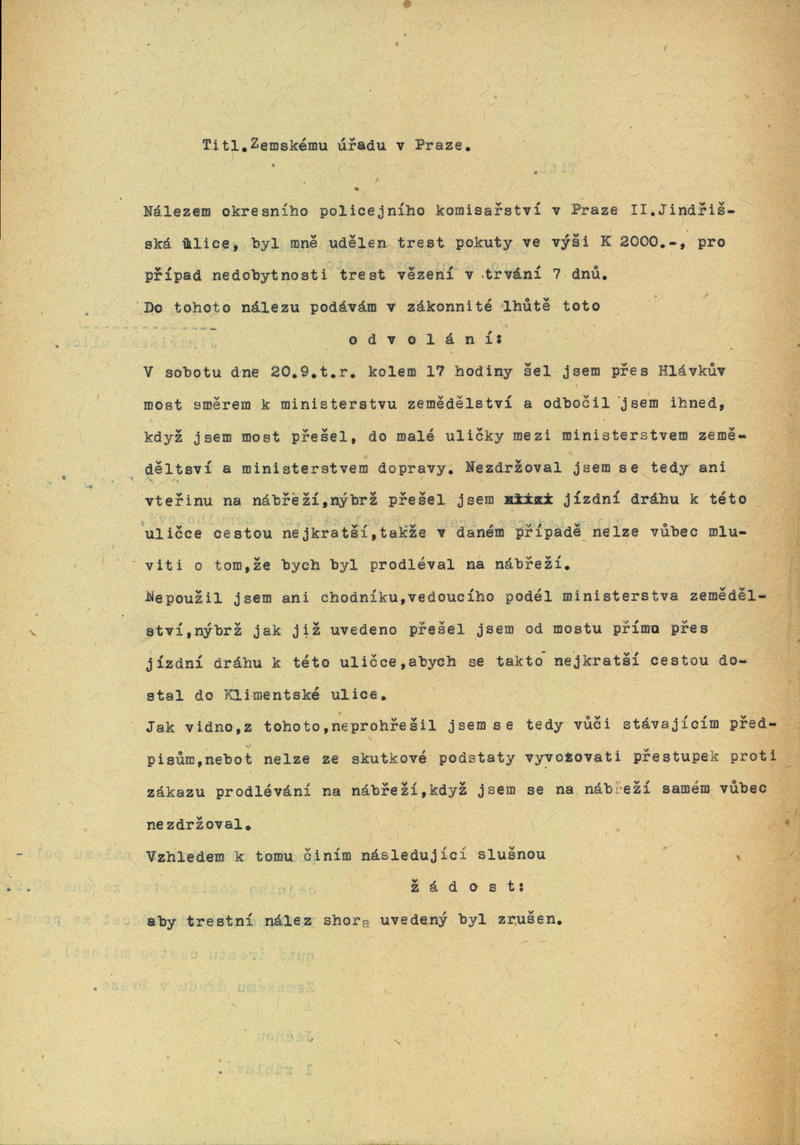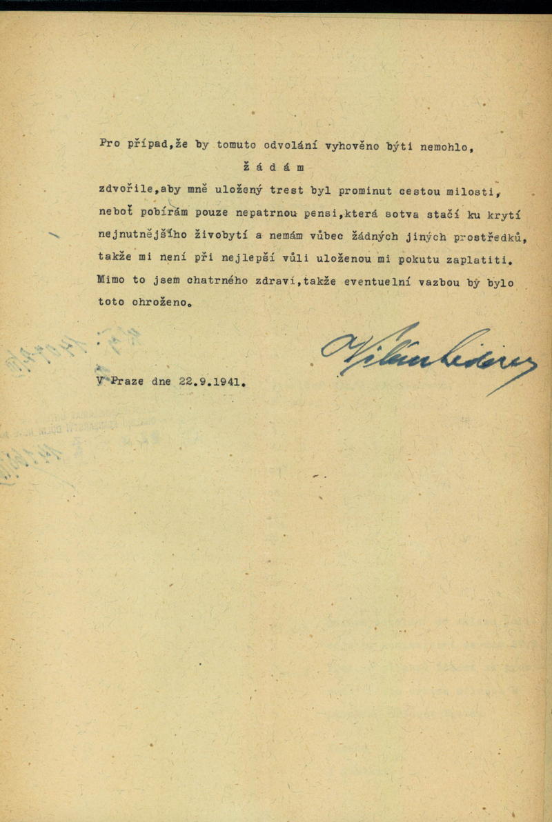 Lederer Vilém: Odvolání proti trestnímu nálezu