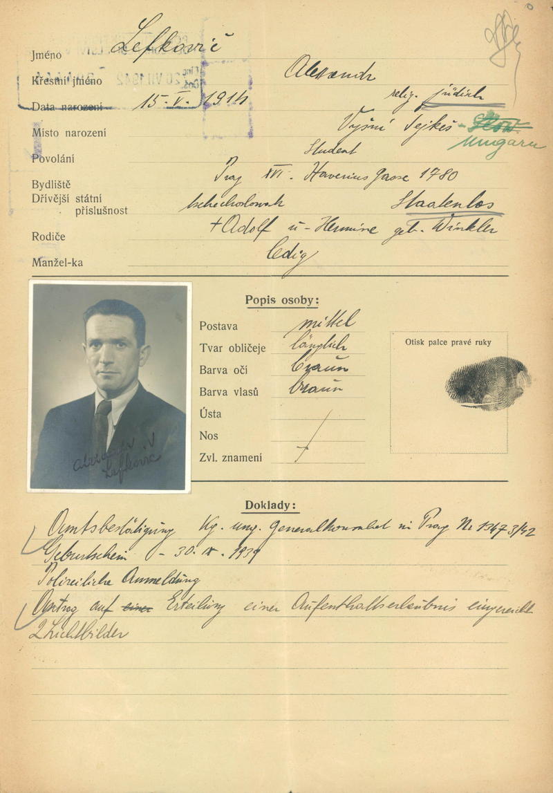 National archives Prague > Police Directorate Prague > 1941-1950 > L > Lefkovič Alexander