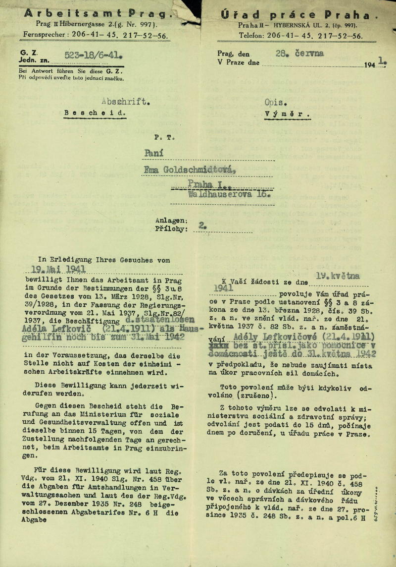 National archives Prague > Police Directorate Prague > 1941-1950 > L > Lefkovičová Adéla
