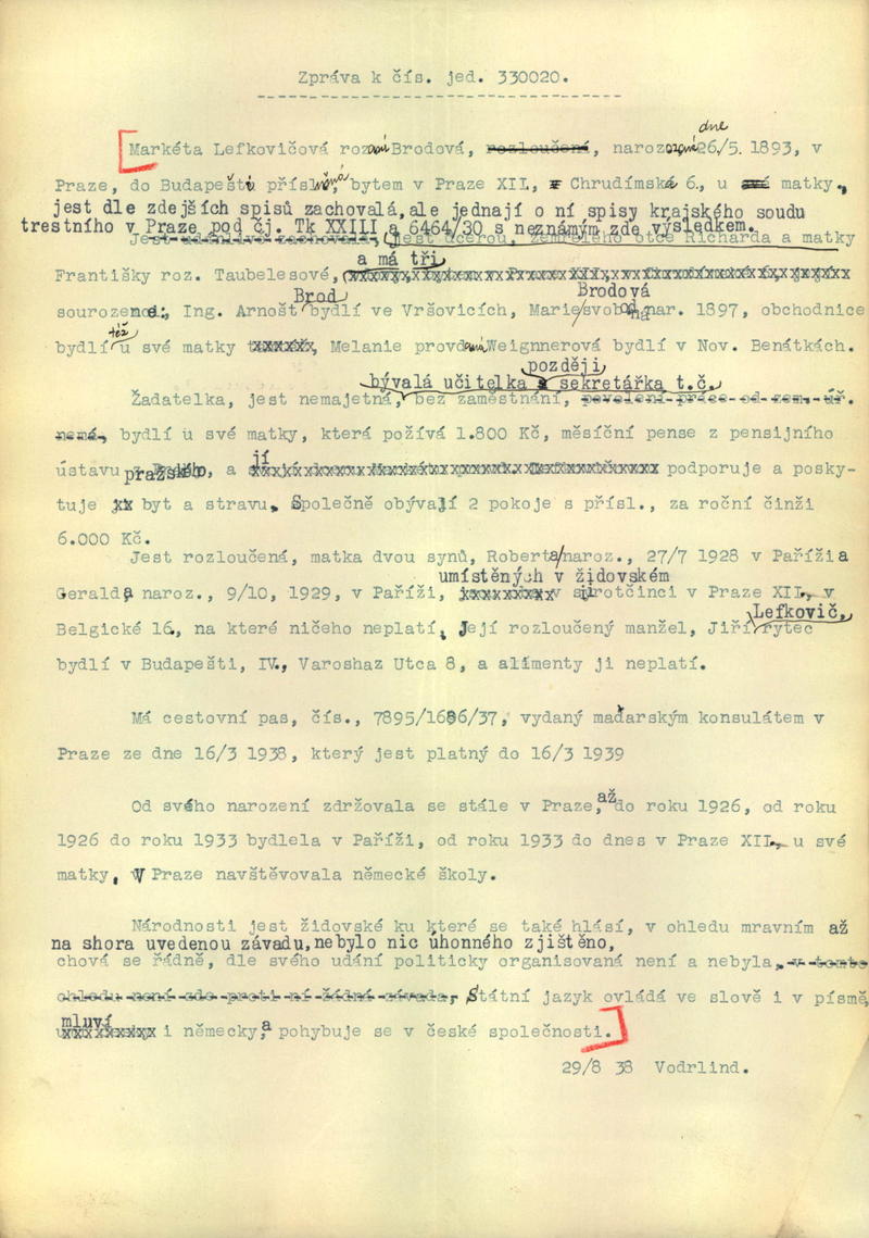 National archives Prague > Police Directorate Prague > 1941-1950 > L > Lefkowitsová Markéta