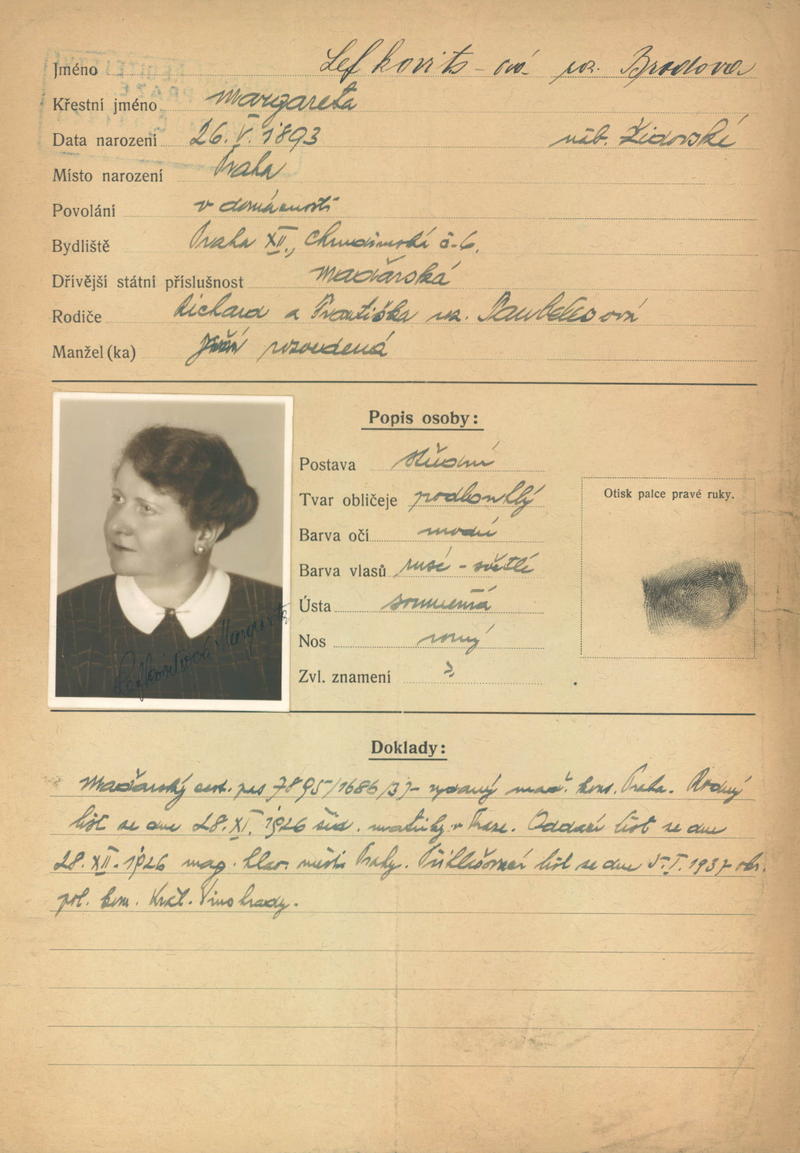 National archives Prague > Police Directorate Prague > 1941-1950 > L > Lefkowitsová Markéta