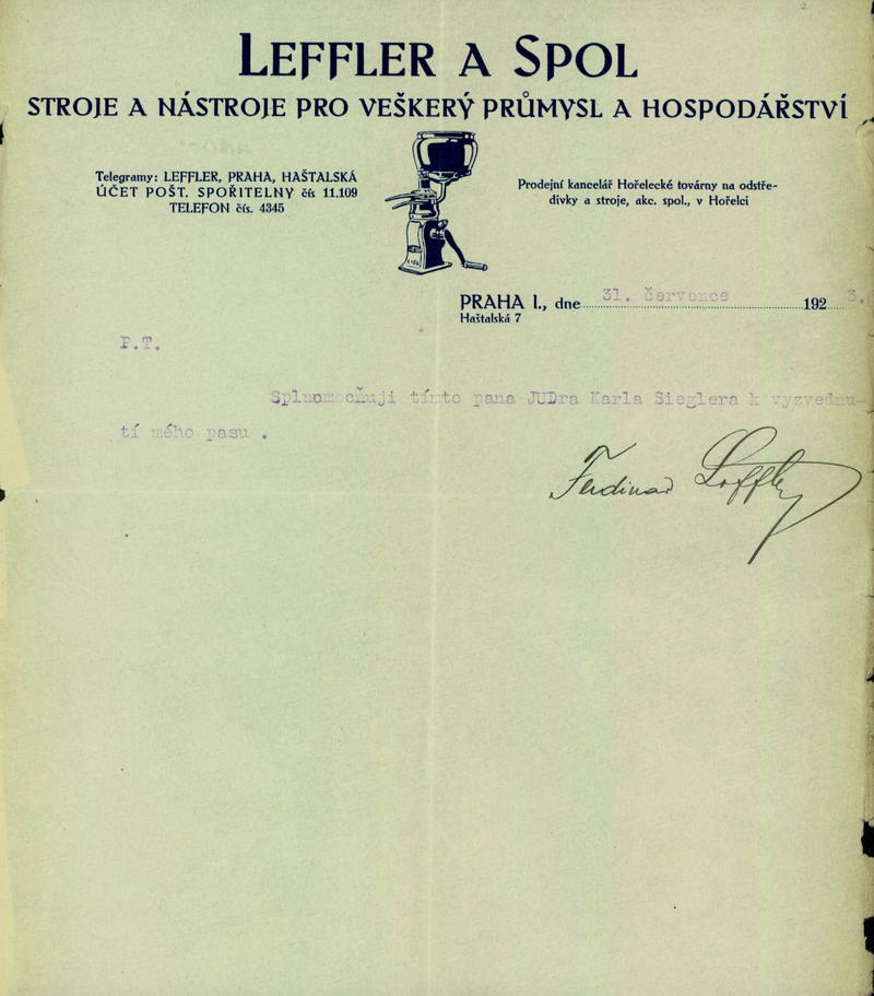 Leffler Ferdinand: Plná moc k vyzvednutí cestovního pasu