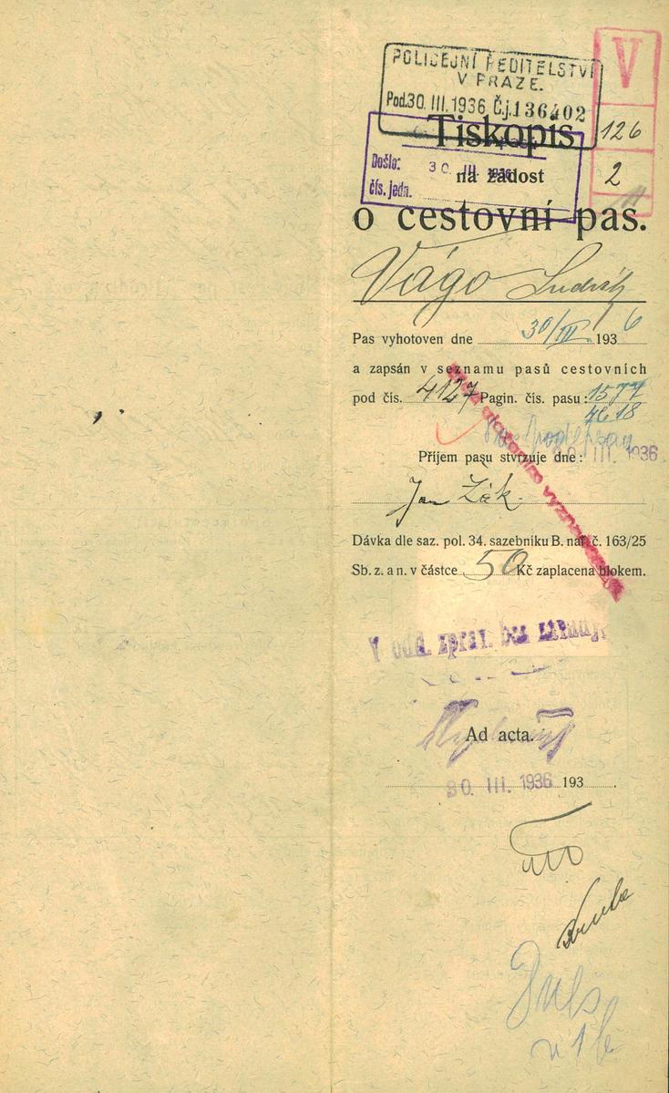 Vágo Ludwig: Žádost o vydání cestovního pasu