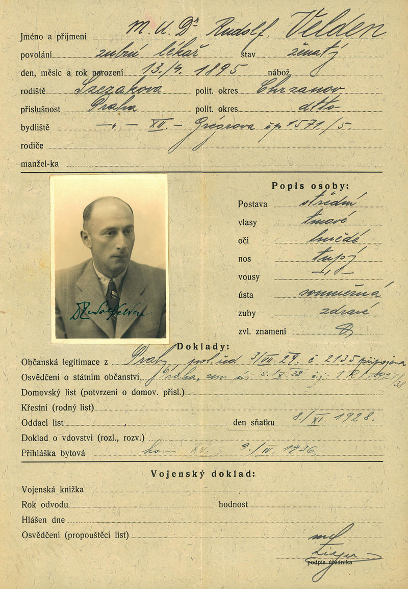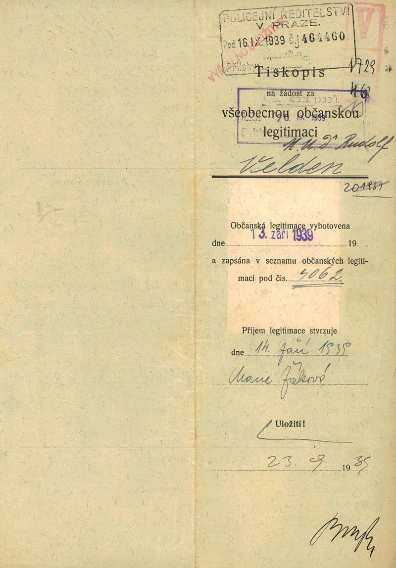 Velden Rudolf: Žádost o vydání občanské legitimace
