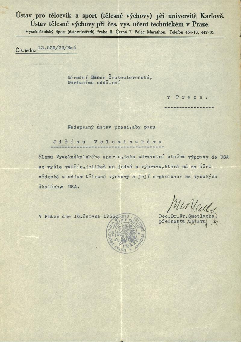 Veleminský Jiří: Žádost o povolení zahraniční cesty