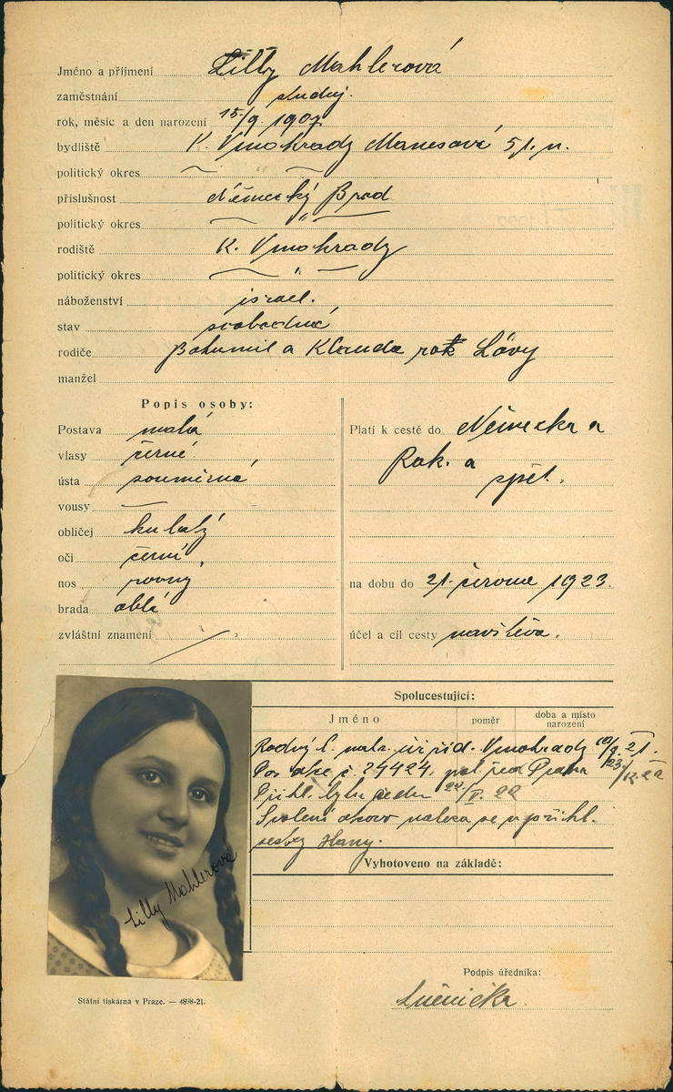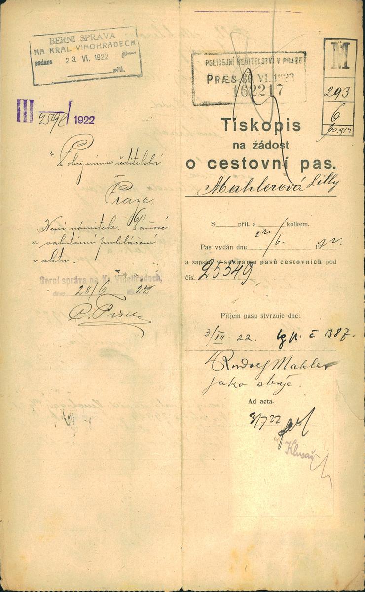 Vodenková Lilli: Žádost o vydání cestovního pasu