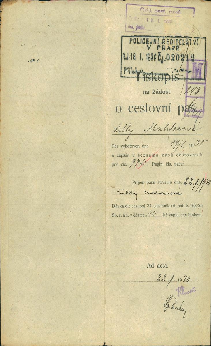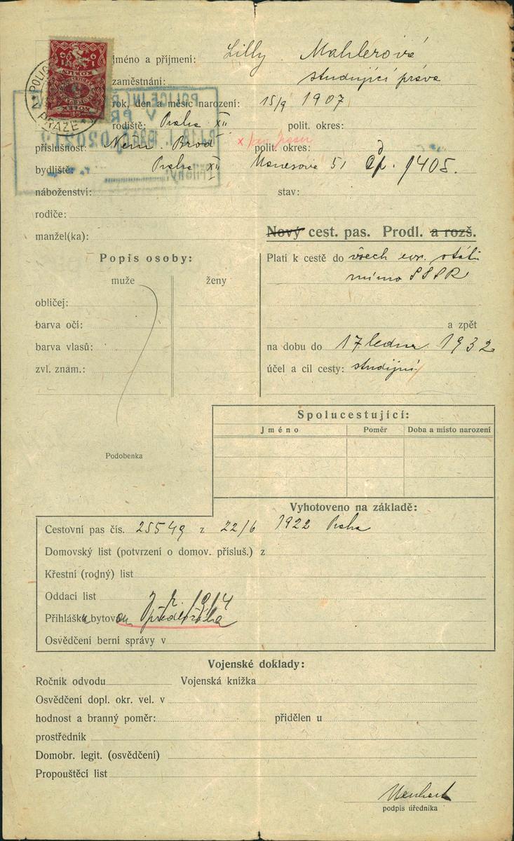 Vodenková Lilli: Žádost o prodloužení cestovního pasu