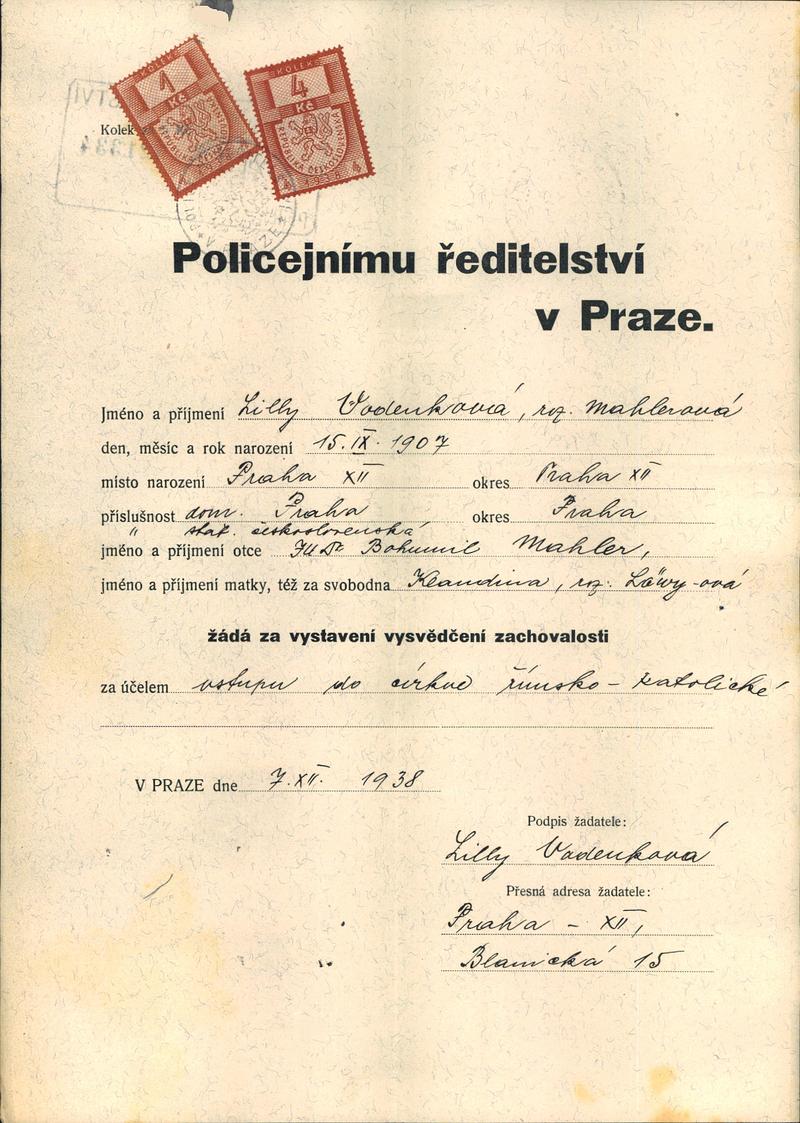 Vodenková Lilli: Žádost o vystavení vysvědčení zachovalosti