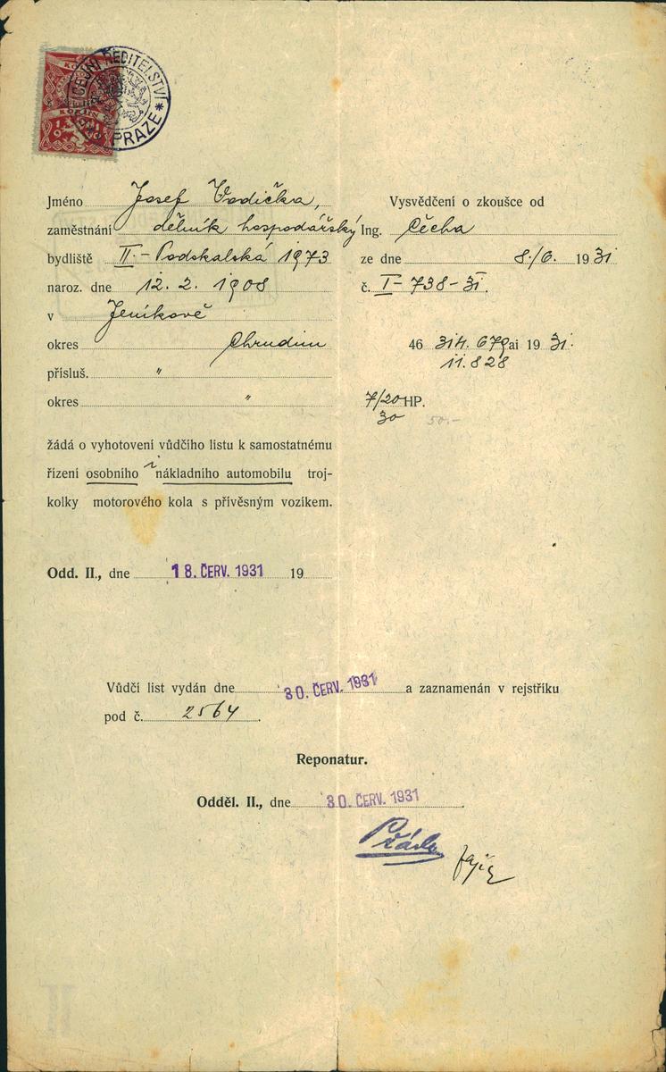 Vodička Josef: Žádost o vydání řidičského průkazu