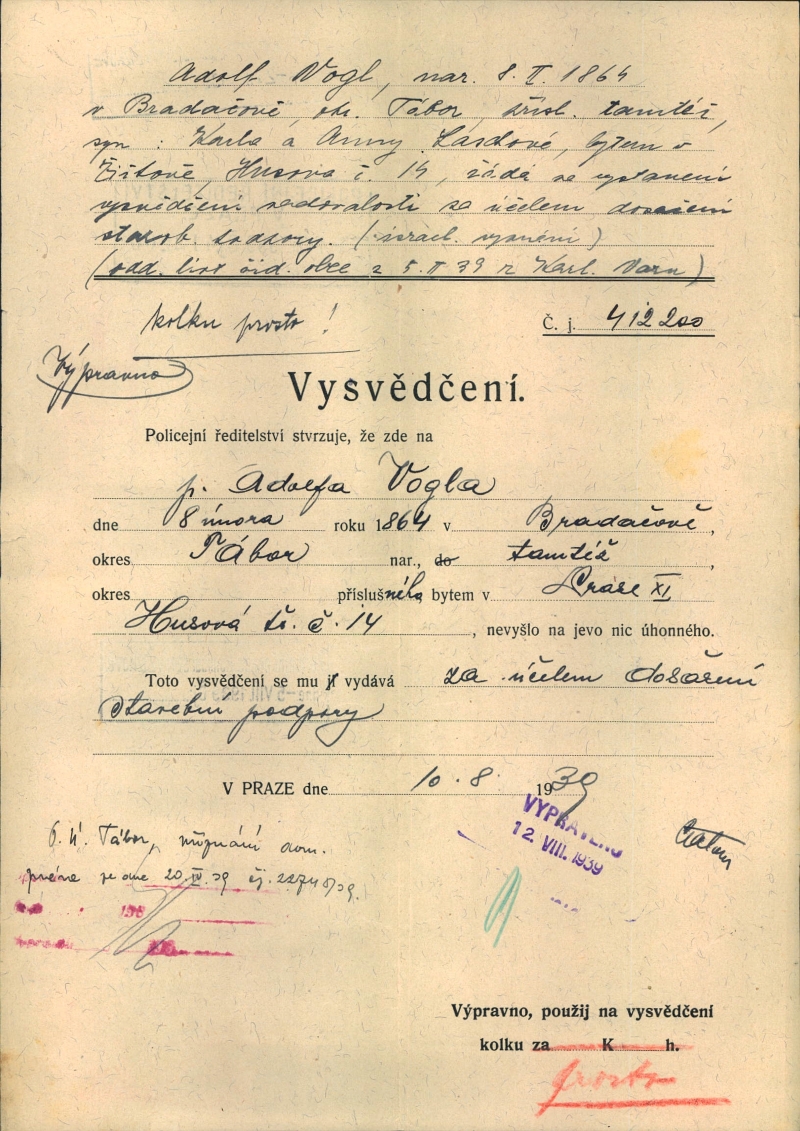 National archives Prague > Police Directorate Prague > 1931-1940 > V > Vogel Adolf