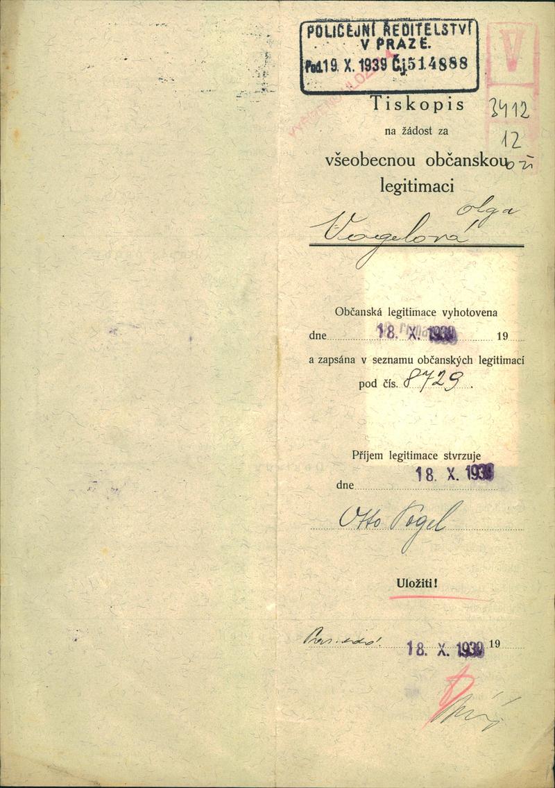Vogelová Olga: Žádost o vydání občanské legitimace