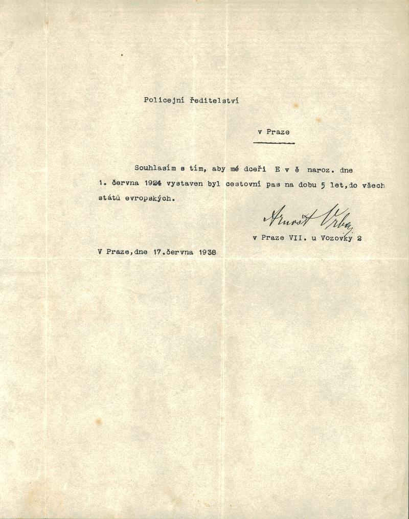 Vrbová Eva: Souhlas s vydáním cestovního pasu