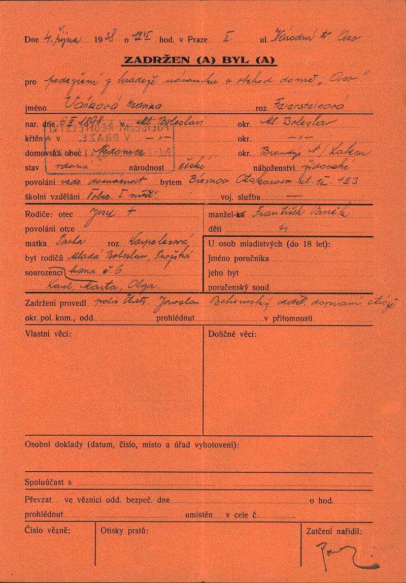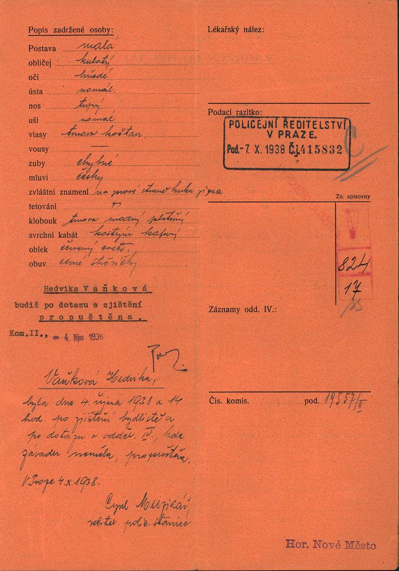 National archives Prague > Police Directorate Prague > 1931-1940 > V > Vaňková Hedvika